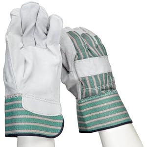 Category: Industrial & Scientific Vendor: Durable select split cowhide leather Leather fingertips/knuckle strap 2-1/2" Rubberized safety cuff, gunn pattern Lining/shell: