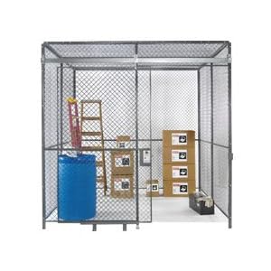 Product Description : WIREWAY/HUSKY Complete Wire Enclosures are handy as a tool room, for valuable parts storage, hazardous, or delicate machinery enclosures, etc. Tough 10-gauge, 11/2" diamond wire construction with steel channel frame. Each room has 5' sliding door with cylinder lock. All parts and hardware are included for complete assembly. 3" sweep space under all panels and doors. Easy bolt assembly and disassembly for quick relocation. Each order includes: basic bolt-together hardware, floor shoes, and top capping channel. Security rooms with ceilings come with ceiling angle in place of top capping channel. Durable gray enamel finish.